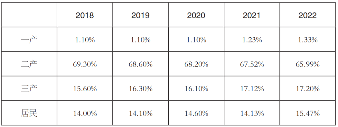 表3 2018—2022年全社會(huì)用電結(jié)構(gòu)