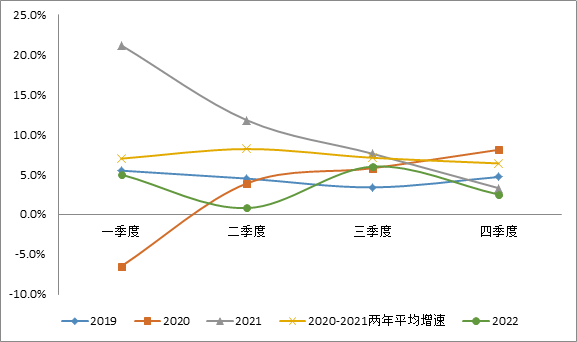 圖2 2019—2022年全國(guó)全社會(huì)用電量季度增速