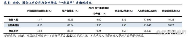 《方案》也要求深化解決部分中央企業(yè)內(nèi)部上市平臺(tái)定位不清、分布散亂、實(shí)力較弱的具體問題,并提出了相應(yīng)的量化要求。而《方案》的改革重點(diǎn)由全部國(guó)企轉(zhuǎn)變?yōu)檠肫蠊荆覀?認(rèn)為這是基于央企控股上市公司的屬性。相對(duì)于國(guó)企上市公司,央企控股的背景意味著公司 的實(shí)際控制人為國(guó)資委,易于統(tǒng)一管理和直接考核,由此進(jìn)行下一步改革的力度深度或?qū)⒏?強(qiáng)。在引入積極股東環(huán)節(jié),完善企業(yè)治理結(jié)構(gòu),進(jìn)行企業(yè)制度創(chuàng)新等方面成效或更顯著。 近年來,為推動(dòng)中央企業(yè)加快實(shí)現(xiàn)高質(zhì)量發(fā)展,國(guó)資委探索建立了中央企業(yè)經(jīng)營(yíng)指標(biāo)體系。 2020 年,首次形成“兩利三率”指標(biāo)體系,包括凈利潤(rùn)、利潤(rùn)總額、營(yíng)業(yè)收入利潤(rùn)率、資產(chǎn)負(fù) 債率和研發(fā)經(jīng)費(fèi)投入強(qiáng)度。2021 年,為引導(dǎo)中央企業(yè)提高生產(chǎn)效率,增加了全員勞動(dòng)生產(chǎn) 率指標(biāo),完善為“兩利四率”。2022 年,針對(duì)“兩利四率”指標(biāo),進(jìn)一步提出“兩增(利潤(rùn)總額和 凈利潤(rùn)增速高于國(guó)民經(jīng)濟(jì)增速)一控(控制好資產(chǎn)負(fù)債率)三提高(營(yíng)業(yè)收入利潤(rùn)率、全員 勞動(dòng)生產(chǎn)率、研發(fā)經(jīng)費(fèi)投入進(jìn)一步提高)”的總體要求。2023 年的中央企業(yè)負(fù)責(zé)人會(huì)議上, 國(guó)資委在總結(jié)近幾年工作成效基礎(chǔ)上,對(duì)中央企業(yè)經(jīng)營(yíng)指標(biāo)體系進(jìn)行了優(yōu)化調(diào)整,將“兩利 四率”調(diào)整為“一利五率”。 “一增”即確保利潤(rùn)總額增速高于全國(guó) GDP 增速;“一穩(wěn)”即企 業(yè)資產(chǎn)負(fù)債率總體保持穩(wěn)定;“四提升”即凈資產(chǎn)收益率、研發(fā)經(jīng)費(fèi)投入強(qiáng)度、全員勞動(dòng)生產(chǎn)率、營(yíng)業(yè)現(xiàn)金比率 4個(gè)指標(biāo)進(jìn)一步提升。