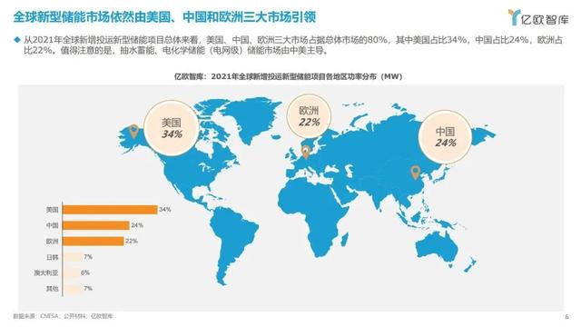 電能儲(chǔ)能包含機(jī)械、化學(xué)及電磁等眾多技術(shù)路線,抽水蓄能仍是主要儲(chǔ)能方式,美國(guó)、中國(guó)和歐洲依然引領(lǐng)全球新型儲(chǔ)能市場(chǎng)。