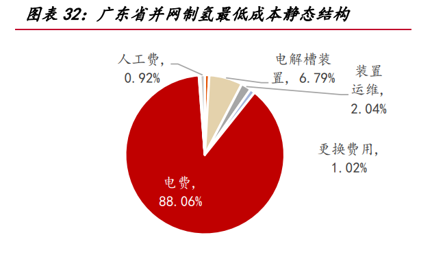 并網(wǎng)制氫模式下,電費(fèi)為主要影響因素,成本占比介于 60%~88%之間,五省中山 西省并網(wǎng)制氫成本最低 9.60 元/kWh(考慮氧氣沖減),廣東省并網(wǎng)制氫成本最高 19.73 元/kWh(考慮氧氣沖減),并網(wǎng)制氫成本與風(fēng)光發(fā)電滲透率相關(guān),也與該省輸配電價 格水平有關(guān),隨著風(fēng)光發(fā)電滲透率的提升將使得低電價時長增加。同時,電價的預(yù)測 能力成為影響電解水制氫成本的關(guān)鍵因素,在實(shí)際制氫的過程中,即使實(shí)際用電情況 與理想情況存在偏差,電解水制氫的成本仍處于成本曲線的低谷段,僅浮動 0.5~1 元 /kg。 目前全國最大的并網(wǎng)制氫項目——內(nèi)蒙古鄂爾多斯市烏審旗風(fēng)光融合綠氫化工 示范項目已經(jīng)正式啟動,利用鄂爾多斯地區(qū)豐富的太陽能和風(fēng)能資源發(fā)電制氫,預(yù)計 項目投產(chǎn)后,制取綠氫能力達(dá) 3 萬噸/年。
