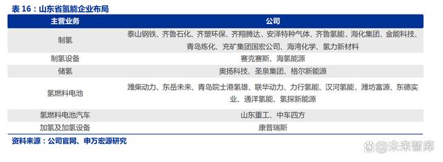 山東依靠扎實(shí)的氫能產(chǎn)業(yè)鏈落實(shí)“氫進(jìn)萬家”政策,未來氫能發(fā)展將與燃料電池示范城市群平行。山東省企業(yè)布局: