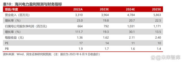 海興電力業(yè)務(wù)拆分: 1) 智能配用電:根據(jù) markets and markets 報告,2021 年全球智能電網(wǎng)規(guī)模約 為 431 億美元,預(yù)計 2026 年將達(dá)到 1034 億美元,CAGR 為 19%。其中海 外拉美及非洲大多數(shù)國家仍處于智能電網(wǎng)改造大規(guī)模投資建設(shè)期,對電力基礎(chǔ) 設(shè)施建設(shè)需求旺盛,對應(yīng)智能配用電解決方案和產(chǎn)品需求顯著增加。國內(nèi)方面, “十四五”期間,國網(wǎng)和南網(wǎng)的計劃投資近 3 萬億元,年均 5800 億元。我們 預(yù)計公司智能用電產(chǎn)品 23-25 年收入增速分別為 20%/21%/23%,智能配電 產(chǎn)品 23-25 年收入增速分別為 15%/15%/15%。 2) 新能源:全球光伏市場高速發(fā)展,2022 年全球 GW 級光伏市場達(dá)到 26 個, 新增 5 個 GW 級市場,其中印度、越南、沙特、巴西等市場擁有大量在建項(xiàng) 目,這些國家地區(qū)在未來三年內(nèi)將迎來集中并網(wǎng)的高峰。公司目前已構(gòu)建新能 源全球渠道,形成產(chǎn)品-營銷-交付三位一體的管控體系。我們預(yù)計公司新能源 業(yè)務(wù) 23-25 年收入增速分別為 40%/40%/40%。