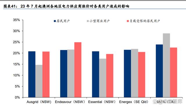 23 上半年澳洲電價處于環(huán)比上升階段,AER 預計下半年起電價上升 20%~25%。盡管相較 于 22 年,23 年眾多能源問題有所緩解,但是長期來看,煤炭和天然氣供應仍存在不利因 素,例如國際能源價格仍然偏高,Liddell 發(fā)電站于 23 年 4 月關閉導致煤電減少,澳洲國內 天然氣供應逐漸減少等。根據 AER 統(tǒng)計,23Q2 昆士蘭州、新南維爾州、維多利亞州、南 澳大利亞州四州的電力現貨價格分別達到 139/148/96/136 澳元/MWh,同比-59.6%/-53.9% /-60.2%/-51.4%,雖然有所下降,但是均仍顯著高于前期 21 年全年平均水平(72.63 澳元 /MWh)。由于通脹、俄烏沖突和電廠老化造成的批發(fā)價格上升,下半年電價或仍處于上升 通道。根據 AER,23 年 7 月 1 日起,電價預計將有同比 20%~25%的漲幅,主要影響對象 是家庭用戶和小商販,或將直接刺激家庭儲能安裝需求。