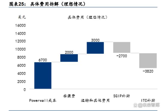 NEM 3.0:平均電力回購價格預計下降 75%,補貼下降反提升戶儲安裝經濟性。據加州太 陽能和儲能公司(CALSSA)協(xié)會報道,NEM 3.0 協(xié)議將導致加州的平均太陽能電力回購 價格從度電 0.30 美元下調至 0.08 美元,相當于 75%的下降。在此基礎上,根據 Energysage 和 NEM 3.0 提案的預測,在 NEM 3.0 政策下僅購買戶用光伏設備的回本周期將由原來的 5-6 年延長到 9 年左右。NEM 3.0 對于家庭用光伏的支持力度大大削減,而儲能的經濟性得 以體現。由于基礎電價隨著一天中時間不同而變化,安裝戶儲意味著用戶可以在回購電價 低的時候儲存多余的電量,在電價高的時候向電網回輸電力,波動性增加帶來經濟性提升。 據 NEM 3.0提案預測,安裝戶儲的回本周期最低可達 6.98年,低于僅安裝光伏的回本周期, 配儲經濟性體現,我們預計 2023 年 4 月后安裝的戶用光伏配儲比例將得到較大幅度提升。