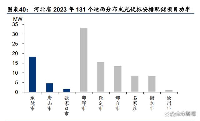 河北案例:以河北省發(fā)改委公示的河北省 2023 年地面分布式光伏擬安排項(xiàng)目來看,共計(jì) 302 個(gè) 項(xiàng) 目 ,總 規(guī)模 1.43GW ,其中 131 個(gè) 項(xiàng)目 承諾 按要 求配 置儲 能,總規(guī)模 104MW/204MWh。需要注意的是,131個(gè)承諾按要求配儲的地面分布式光伏項(xiàng)目,均位于 無開放容量區(qū),而在可開放容量范圍內(nèi)的 171個(gè)項(xiàng)目均無需承諾配置儲能。