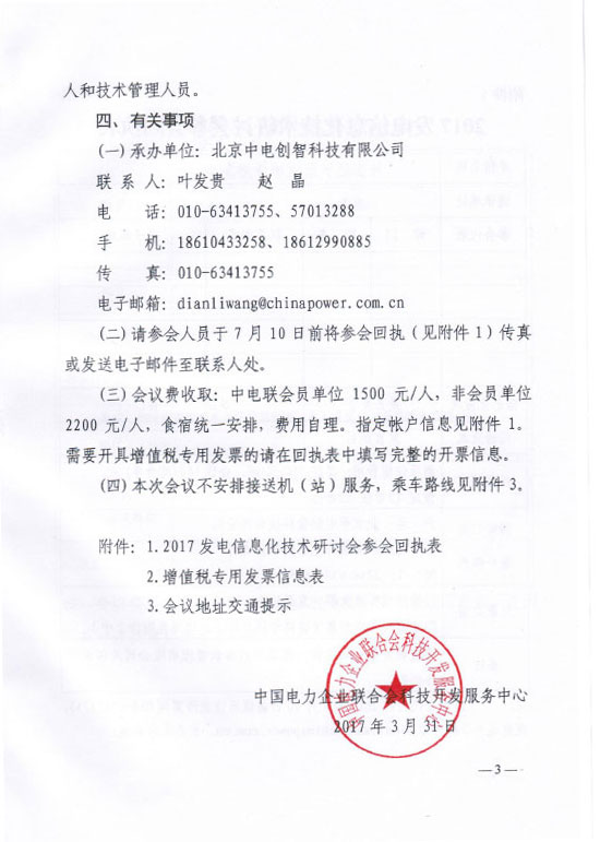 關(guān)于舉辦2017發(fā)電信息化技術(shù)研討會(huì)的通知